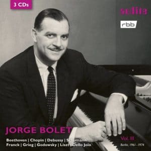 . Robert Schumann (1810-1856): Sonate pour piano N° 3, Op. 14 ; Schumann/Liszt (1811-1886): Frühlingsnacht ; Edvard Grieg (1843-1907): Ballade, Op. 24 ; César Franck (1822-1890): Prélude, Aria et Final ; Claude Debussy: Images, deuxième livre; Masques. Norman Dello Joio (1913-2008): Sonate pour piano N° 2 ; Leopold Godowsky (1870-1938): Métamorphoses symphoniques sur des thèmes de Johann Strauss, N° 2 « Die Fledermaus ». Jorge Bolet (piano),